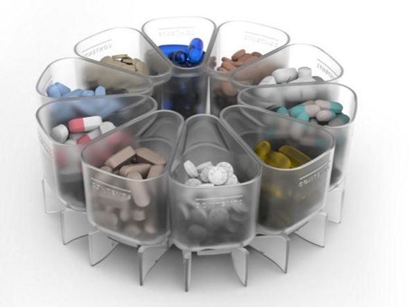 ▲ 內部有10個藥盒,可以存放10種藥品,每個藥盒內可以存放約1個月的藥量。Hero藥箱本身可以通過Wifi與手機App連接,App裡都可以設定你需要的吃藥的時間和次數,時間到了只要按下按鈕就可以拿到需要的藥品啦!