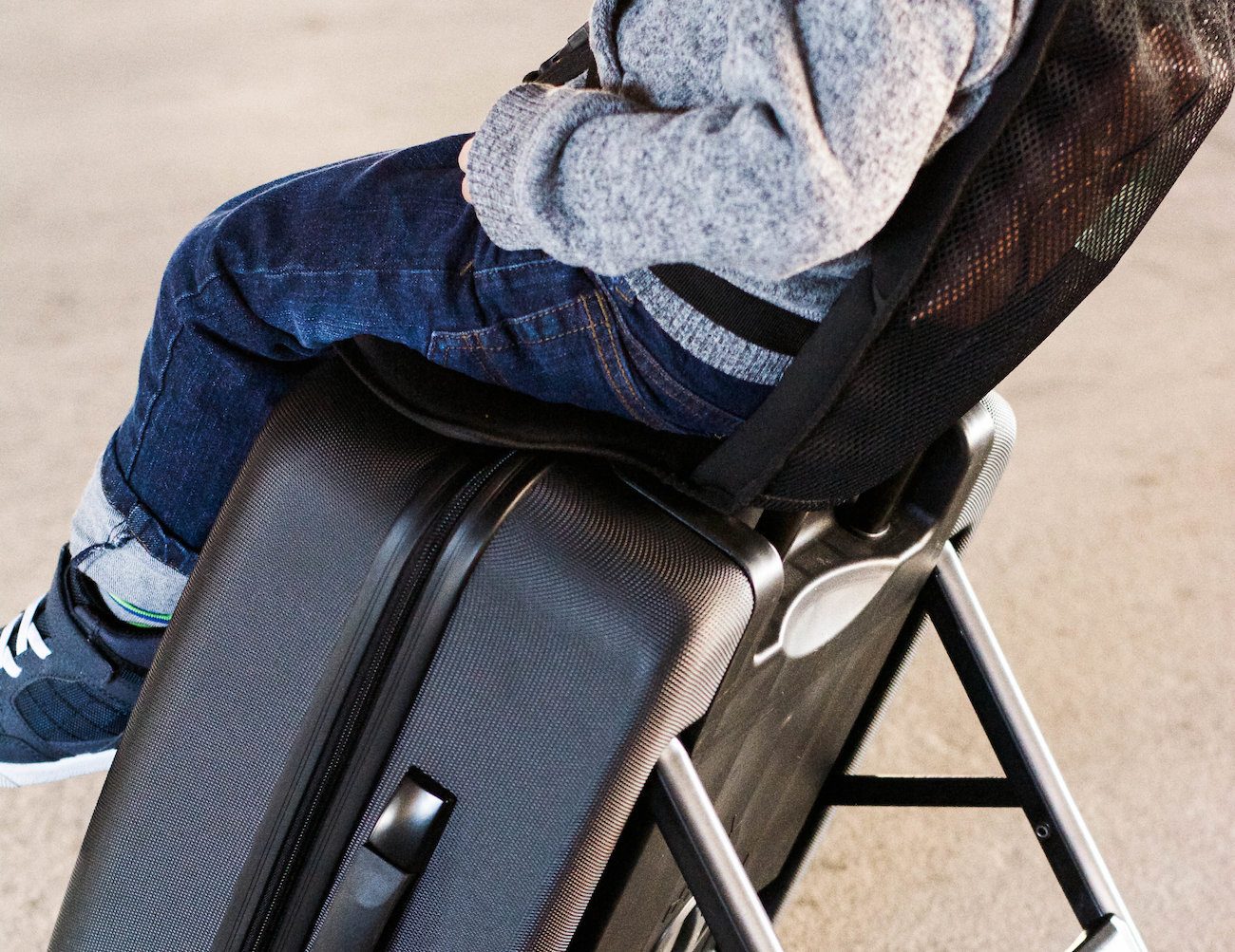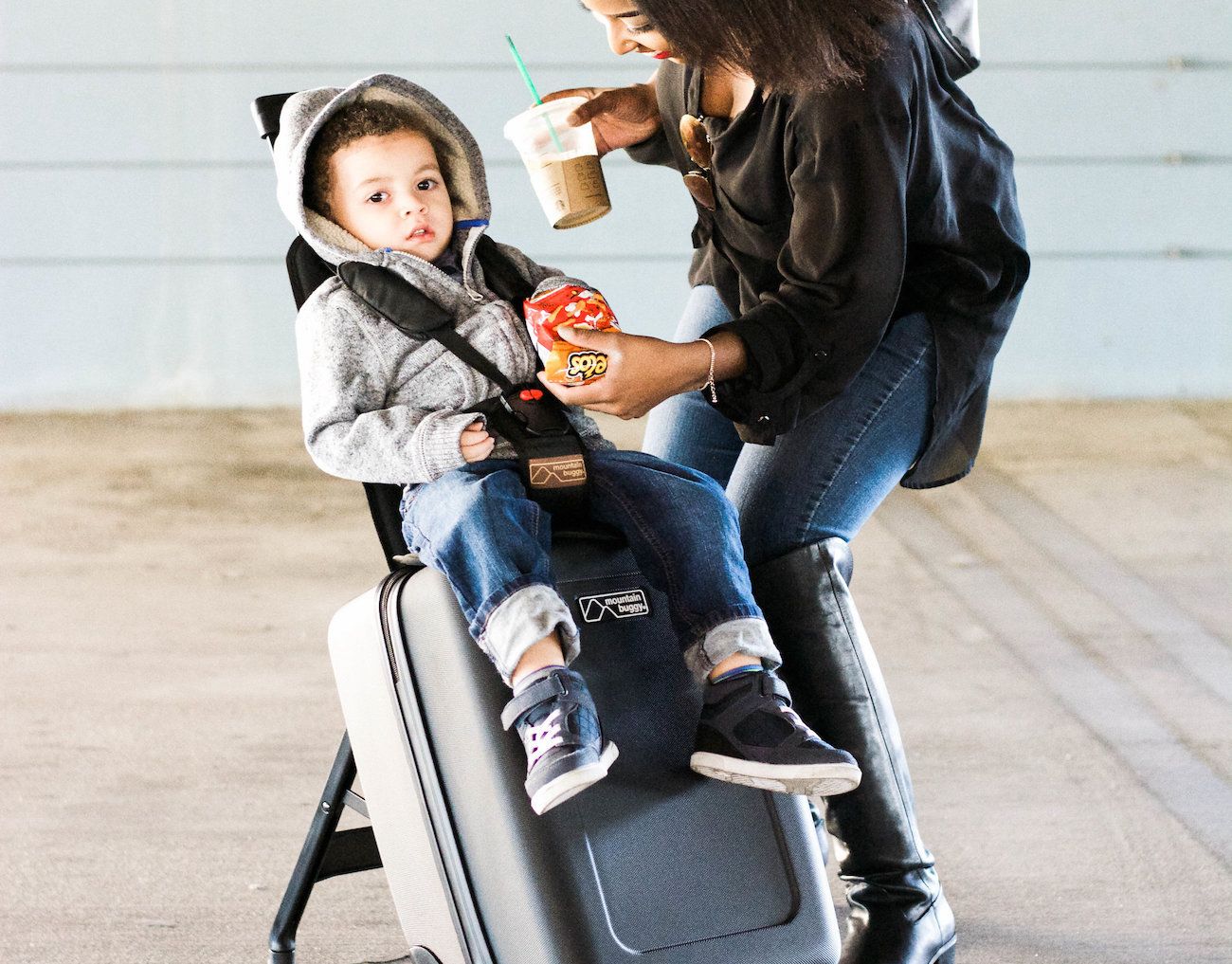 ▲ Mountain Buggy 能裝滿行李,又能當成暫時的兒童推車,讓爸媽們在機場能兼顧小孩和隨身行李。此款行李箱兒童推車能承重到15KG的小朋友,讓他們在等待搭飛機時,不怕累有地方可以坐著休息。