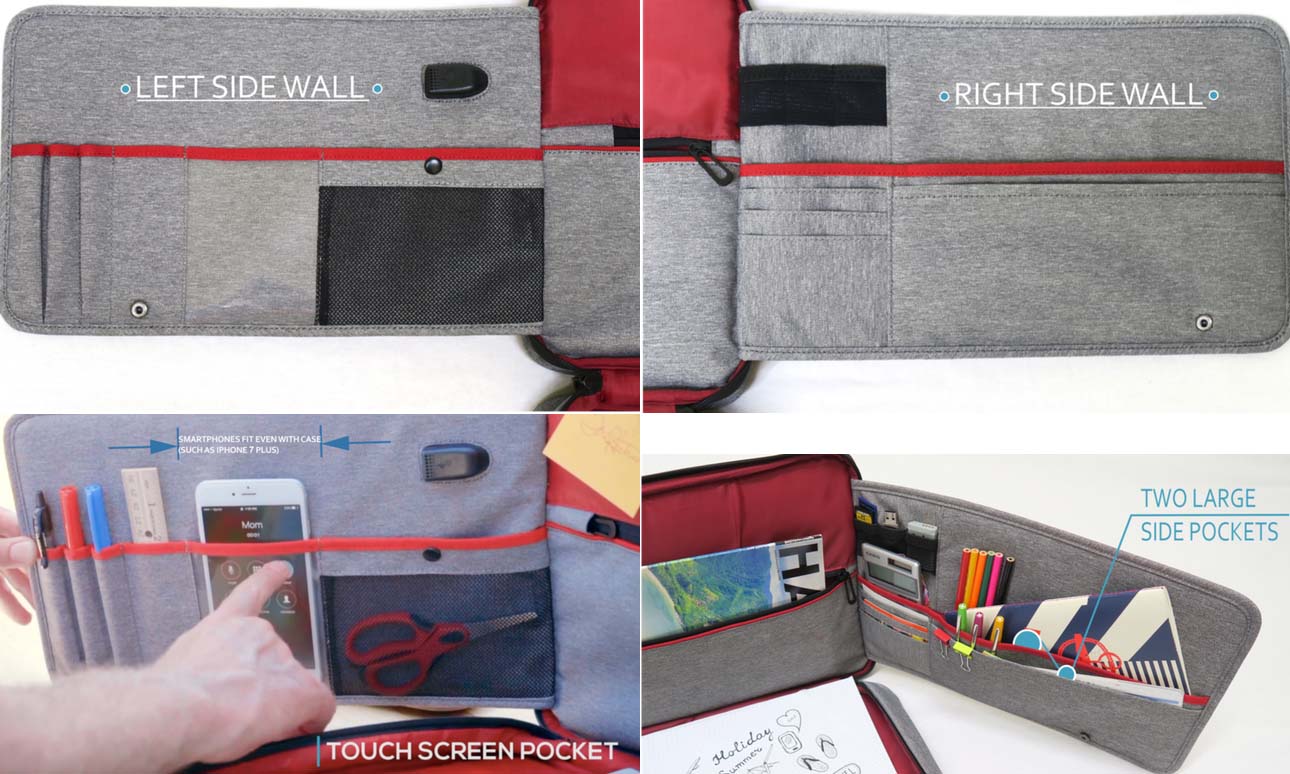 ▲The Moose裡頭配備超過15個內袋,甚至手機架還貼心附有USB充電座,任何辦公用具都能找到地方放