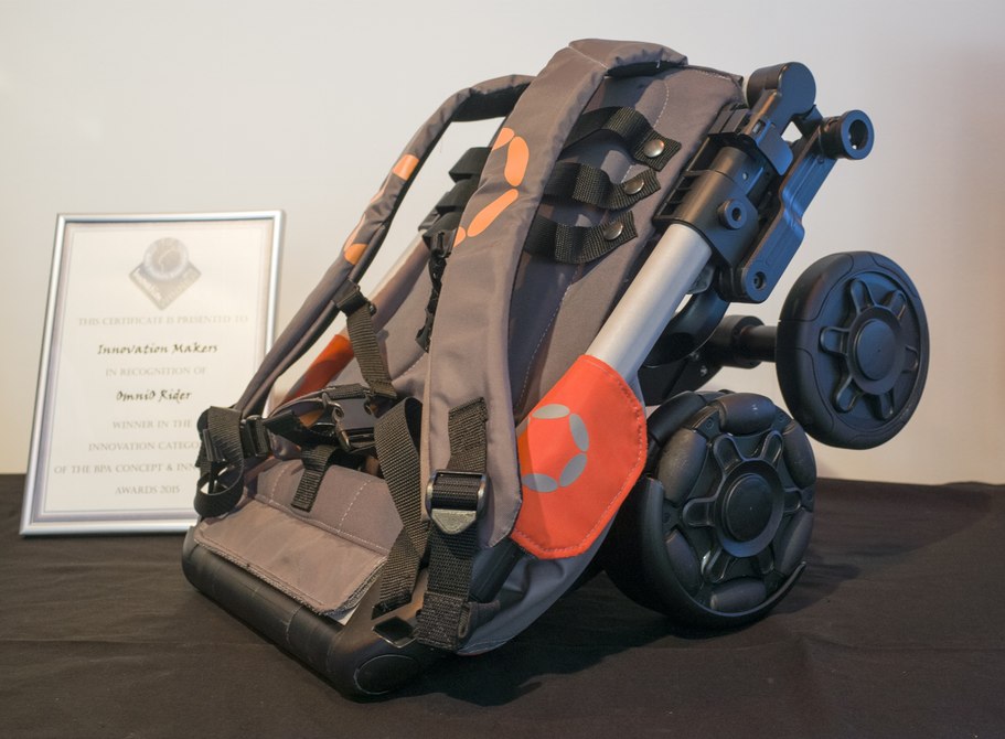 當過爸媽的都知道,1到5歲的小孩很不受控制,很愛自己走,但又走不久,突然累了不想走討抱時,萬ㄧ又沒帶推車,抱他們真的是很崩潰,但帶個ㄧ般推車有時真的很麻煩。所以英國OmniO Rider設計出ㄧ款能折疊又能背在背後當背包的嬰兒推車。這款OmniO Rider也在英國得到英國年度發明大獎!