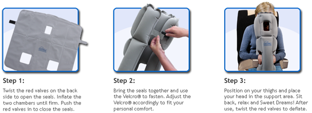 這個充氣隨身枕頭,讓你出門在外能坐著睡一下,就像有張桌子可以趴在上面睡一下,似乎也是滿方便的,比起靠在脖子上的靠枕,有可能會讓你睡得東倒西歪,似乎也很不錯!而且它是個充氣式的隨身枕頭,縮起來時一點都不佔空間,當使用時還有手能放的位置,你也可拿來當作背部的靠墊使用,當需要長途駕車時,也是舒緩背部的靠墊。