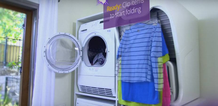 來自舊金山的新創團隊,以公司名稱發表了FoldiMate自動折衣機,使用者只要把洗乾淨且已曬乾的襯衫、褲子、外套…等衣物,夾在FoldiMate機器正前方架子上接著按下開關,FoldiMate就會像機場行李輸送帶一樣,依序把衣物一件件送進自動折衣機裡;且不僅僅是自動折衣、就連蒸氣除皺或噴灑芳香…等保養動作也一氣呵成,如此也省下許多寶貴時間。據官方指出,FoldiMate每折一件衣物花不到十秒鐘,即便是搭配蒸氣除皺與噴灑芳香步驟,也能在半分鐘內完成。