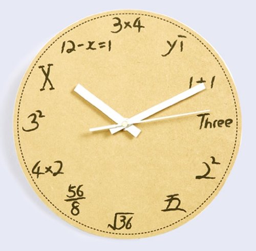 時鐘除了告訴大家現在幾點外,也可以考考你的數學能力。多款數學時鐘,讓使用者用另類方式告訴你現在幾點啦!每天看這樣的數學時鐘除了讓腦子活動不退化,更可以讓居家裝潢增添趣味,有客人來家裡時,也可以考考他們的數學,看看大家有沒有把數學都還給老師啦!