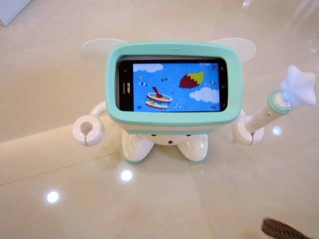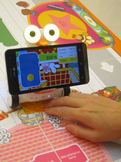 阿提頭上的靈魂之窗:裝上智慧型手機後,就能下載App,開始互動學習遊戲。