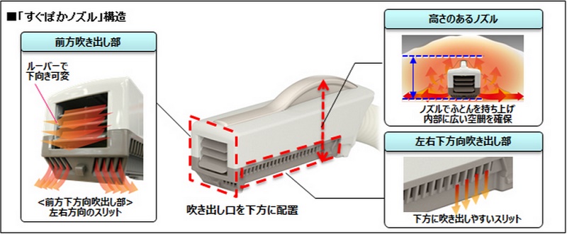 ▲上方有一個可以伸出的出風口,拉出來放到被子裡,就能讓被子乾燥。