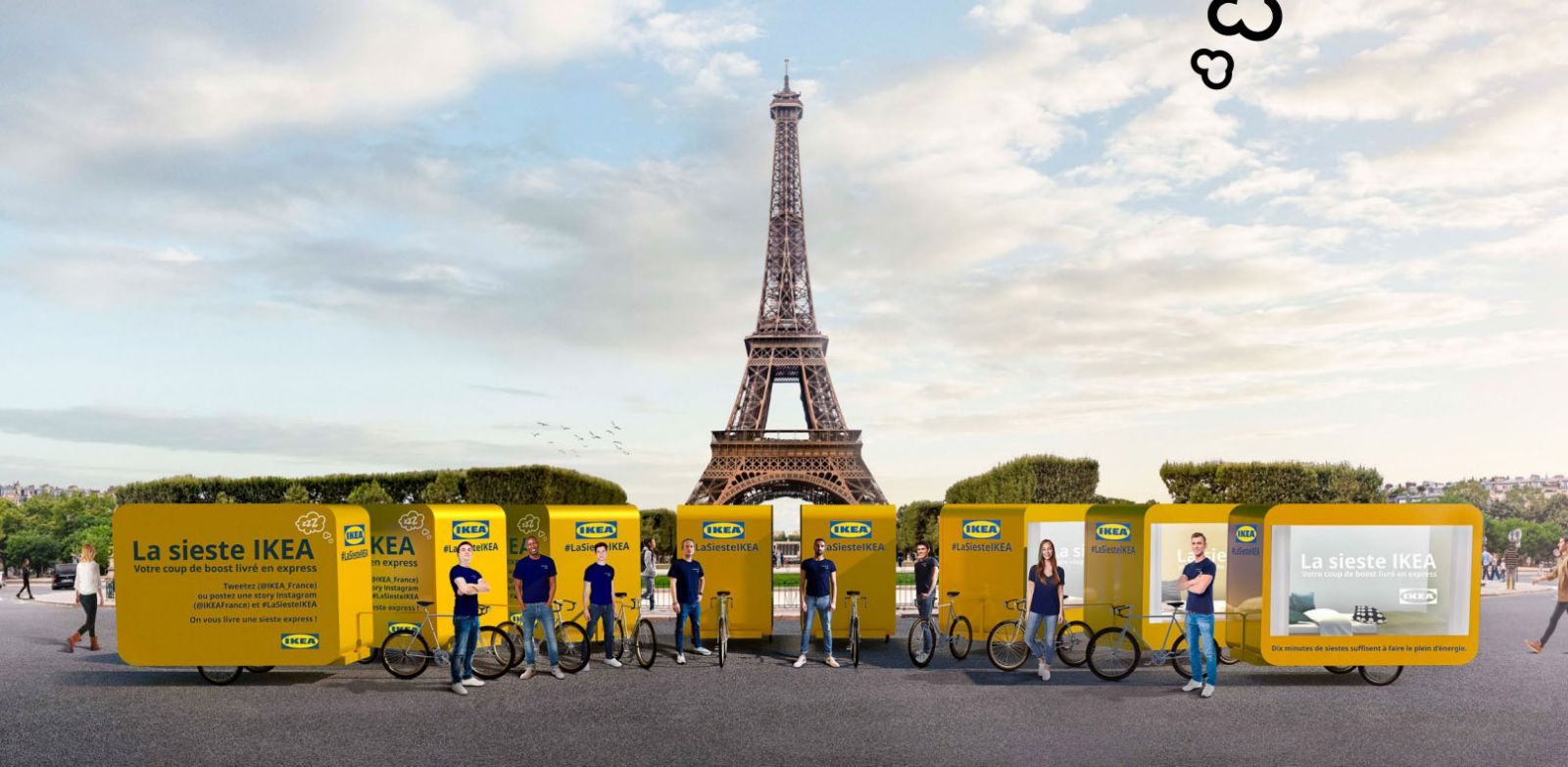 日前總共有8輛IKEA睡眠艙在巴黎街頭移動,如果有興趣體驗,只需要在Instagram分享限時動態、或在Twitter上標記指定標籤,然後IKEA移動式睡眠艙就會在下午1:30~6:30之間,由專人騎著自行車拖到指定地點。