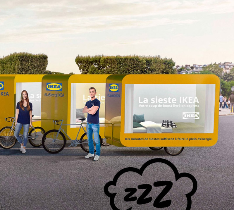 如果你在街上看到照片中這輛車,那麼別懷疑趕快上去,然後直接躺下來睡10分鐘吧!這是知名傢俱品牌IKEA,在法國巴黎推出移動式睡眠艙活動(「La Sieste IKEA),採用傳統自行車方式,拉著睡眠艙移動,裡頭提供一個人的午睡空間,床墊、枕頭、靠墊、羽絨棉被…等應有盡有。