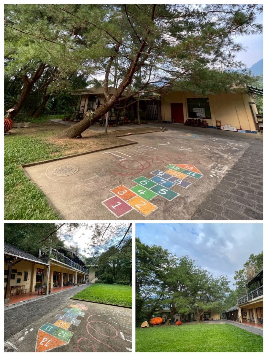 走進校園裡,操場旁的草地依舊寬闊,有爸媽帶孩子在玩跳格子,也有人乾脆坐在長椅上曬太陽,那種笑聲和風聲交錯的畫面,彷彿舊日的童年又回到了眼前。