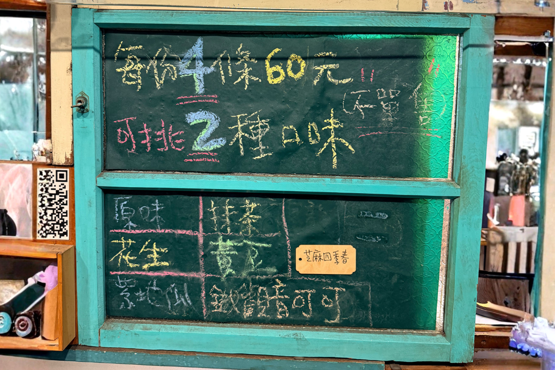 他們家的白糖粿口味超多,一份4條可以選2種口味,只要60元,算是非常佛心的價格。從最經典的原味,到熱門的鐵觀音可可、花生、抹茶、黃豆,甚至還有長輩很愛的紫地瓜,每一種都是粉堆得滿滿的那種豪邁風格。