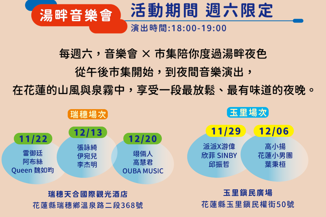 - 活動詳情請主辦方公告為主:https://hotspring.hl.gov.tw/