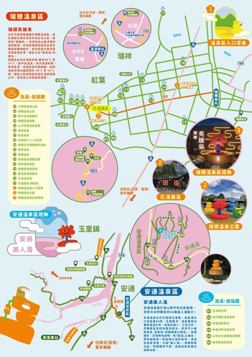 - 路線:瑞穗車站 → 元湯溫泉 → 虎爺溫泉 → 瑞穗溫泉公園 → 瑞穗天合 → 瑞穗牧場 → 鎮民廣場 → 玉里火車站 → 安通溫泉