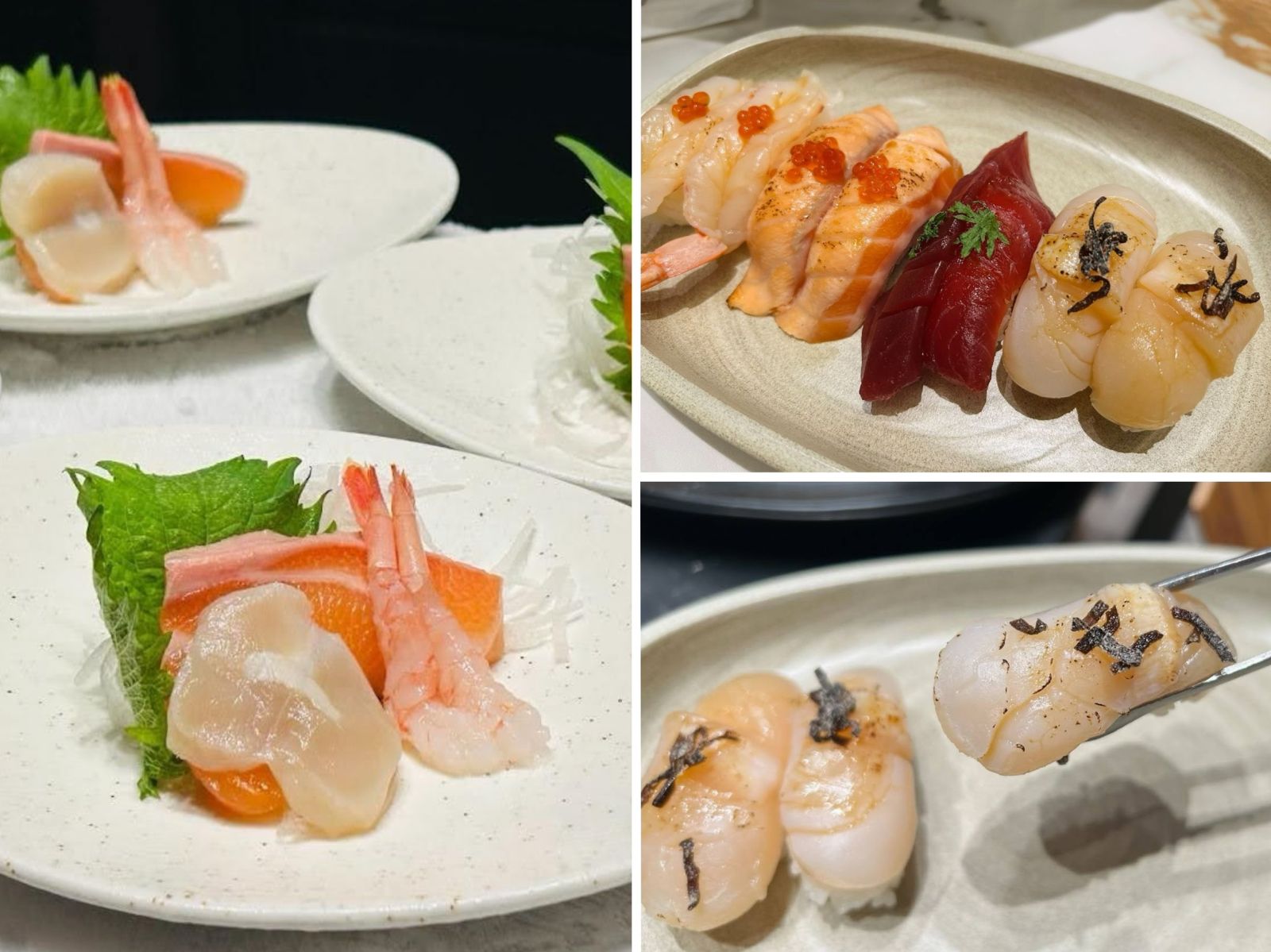 我個人給北海道干貝和新品帆立貝極高的評價,干貝生熟度拿捏的剛剛好,外面有點焦黃、裡頭大約7分熟,一口咬下軟嫩又多汁,給過!魚子醬蒜香帆立貝在烹調時還撒上了很薄很薄的麵粉一起煎,增加酥脆感,每個帆立貝個頭又大又飽滿,吃下去爽感十足,絕對必拿!