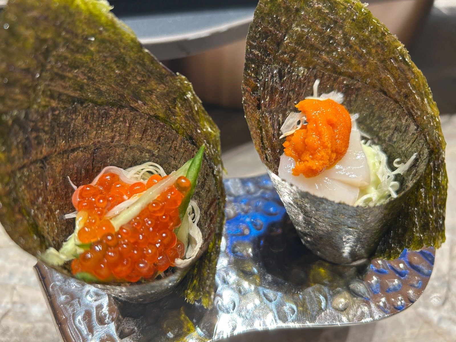 說到吃回本,怎麼可以少了這個重點中的重點!首先大推我最愛的手捲,有提供四種口味,不過建議大家針對「鮭魚卵手捲」和「海膽干貝手捲」下手就可以了,鮭魚卵在口中爆開的滋味就像跨年的101煙火,咻~蹦,2026新年快樂(威XD)海膽干貝就不用說了,甜到我以為是現撈的捏,幸胡啦!