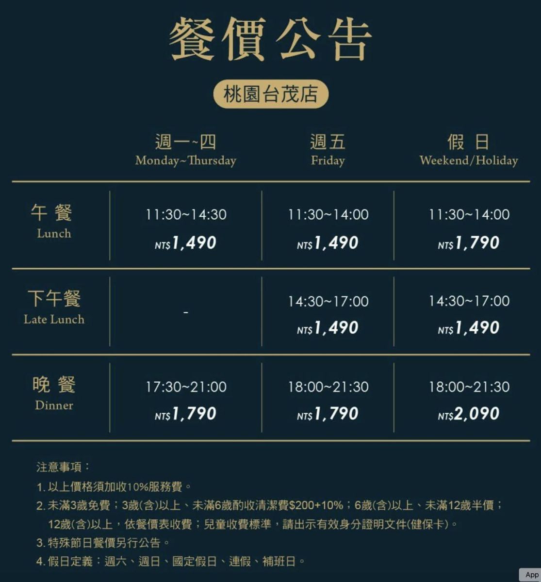 (島語桃園台茂店餐價公告,其他分店不一定相同)