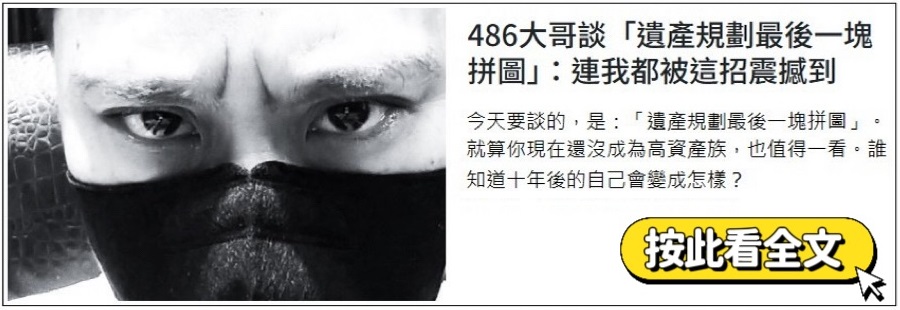 除了缺乏監督決策力還要考量後續整體財務規劃,而她認為,除了投資的資產配置外,還必須同時規劃包含我的稅務、保險、退休、遺產規劃等。