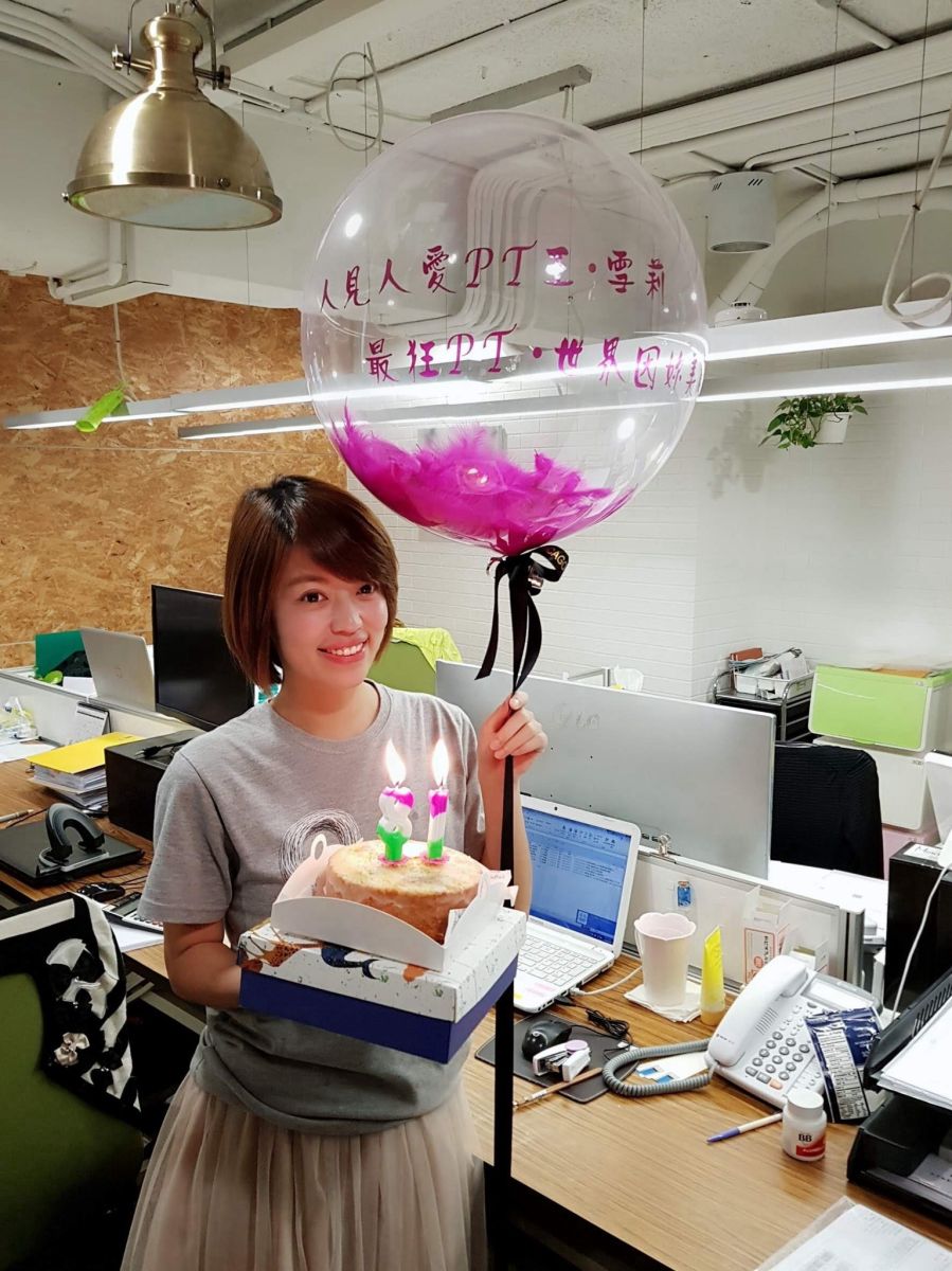 ▴當年還是財務PT的投資經理—雪莉,公司同仁為她慶生