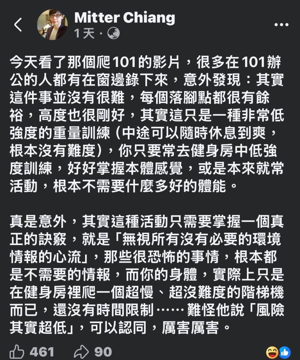 記不記得前幾天我才說有的人談的一嘴好經營?結果現在看到有人爬的一嘴好101。