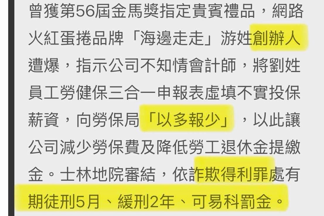 這老闆居然就為了省一點勞保費用,把員工薪資勞保投保金額「以多報少」而被法院判刑,身為創辦人與公司經營者,這不僅是一則社會新聞,更是值得大家深思的案例。