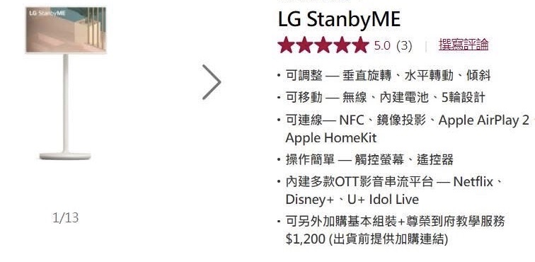 你應該知道閨蜜機,就是所謂的平板電視,它是由 LG 所創造出來的商品,它比一般的平板大非常多,而且還內建大電池,螢幕是可觸控也可遙控,再加上有輪子,所以可以在家裡推來推去,這個在台灣一上市,我是全台灣第 1 個購買的。
