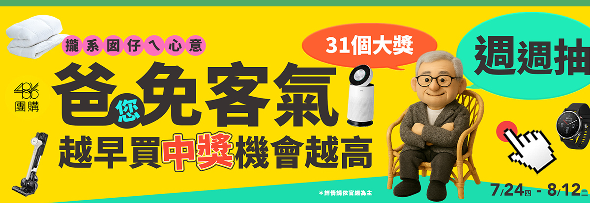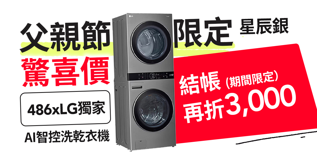 爸爸們「付」親節快樂!還沒清空購物車的請加速,486團購55折優惠即將結束,請把握少失點血的機會。還有個特殊的活動,買指定LG家電不限金額,抽出2位訂單0元!請把握機會