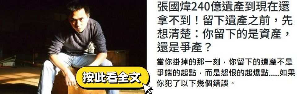 很多富豪像王永慶、張榮發,都因沒做好規劃,讓後代為遺產鬧翻。要知道,只要遺產稅沒繳清,資產都會被國稅局凍結,家人一毛都分不到。