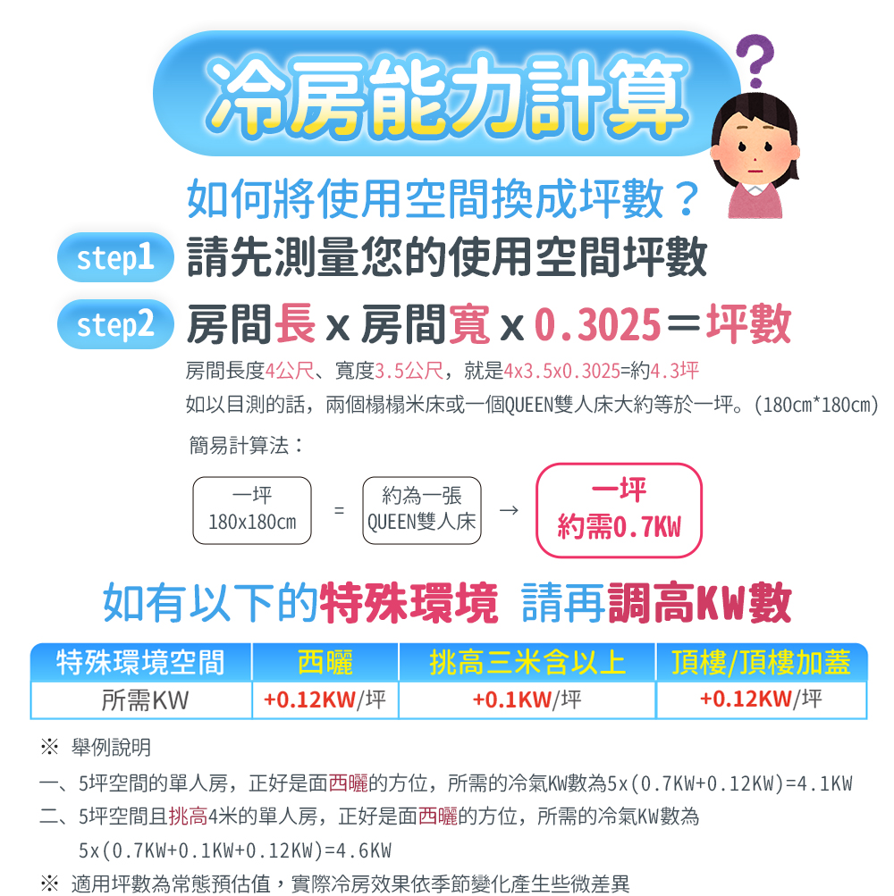 該怎麼選冷氣的噸數?可以看下面這張表。