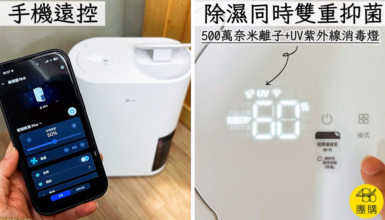 我家是486×LG獨家第六代19.6L雙變頻除濕機→https://lihi3.me/dUsAN,一級能效省電、高達30項安全設計、能設定濕度、手機遠控、除濕力強,濕度太高還會主動通知。搭載UV消毒燈和5百萬奈米離子能雙重抑菌,抑制空氣中的黴菌、細菌和病毒。