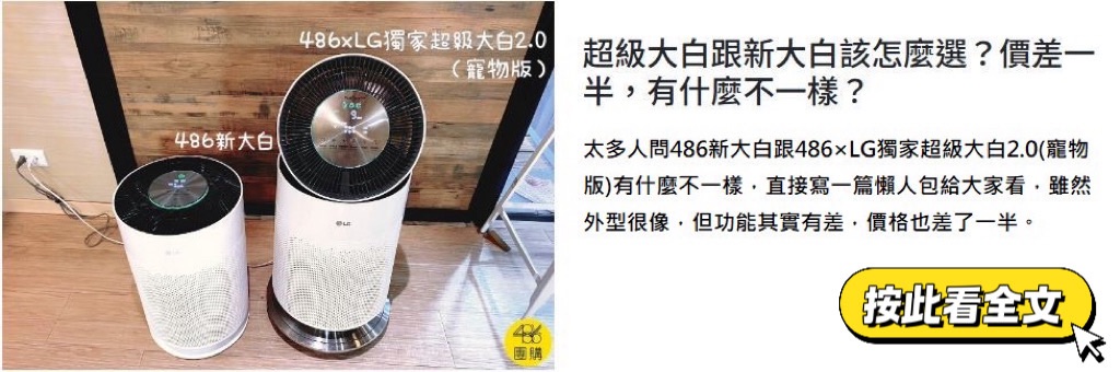 若擔心買到劣質濾網,486全系列LG濾網—大白、超級大白、或更早之前的大漢堡,都是保證原廠韓國製。既然當初決定買好的機種,就不要為了省幾百元去買副廠濾網,然後在那擔心過濾效果,得不償失。