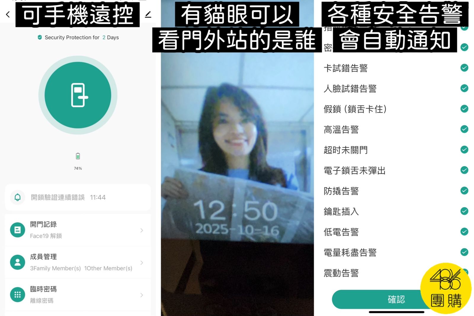 ▴貓眼設計,可以看到門外站的是誰,手機遠控更是方便,所有進出門也都有紀錄,密碼錯誤、有人撬門等也都會自動推播告警