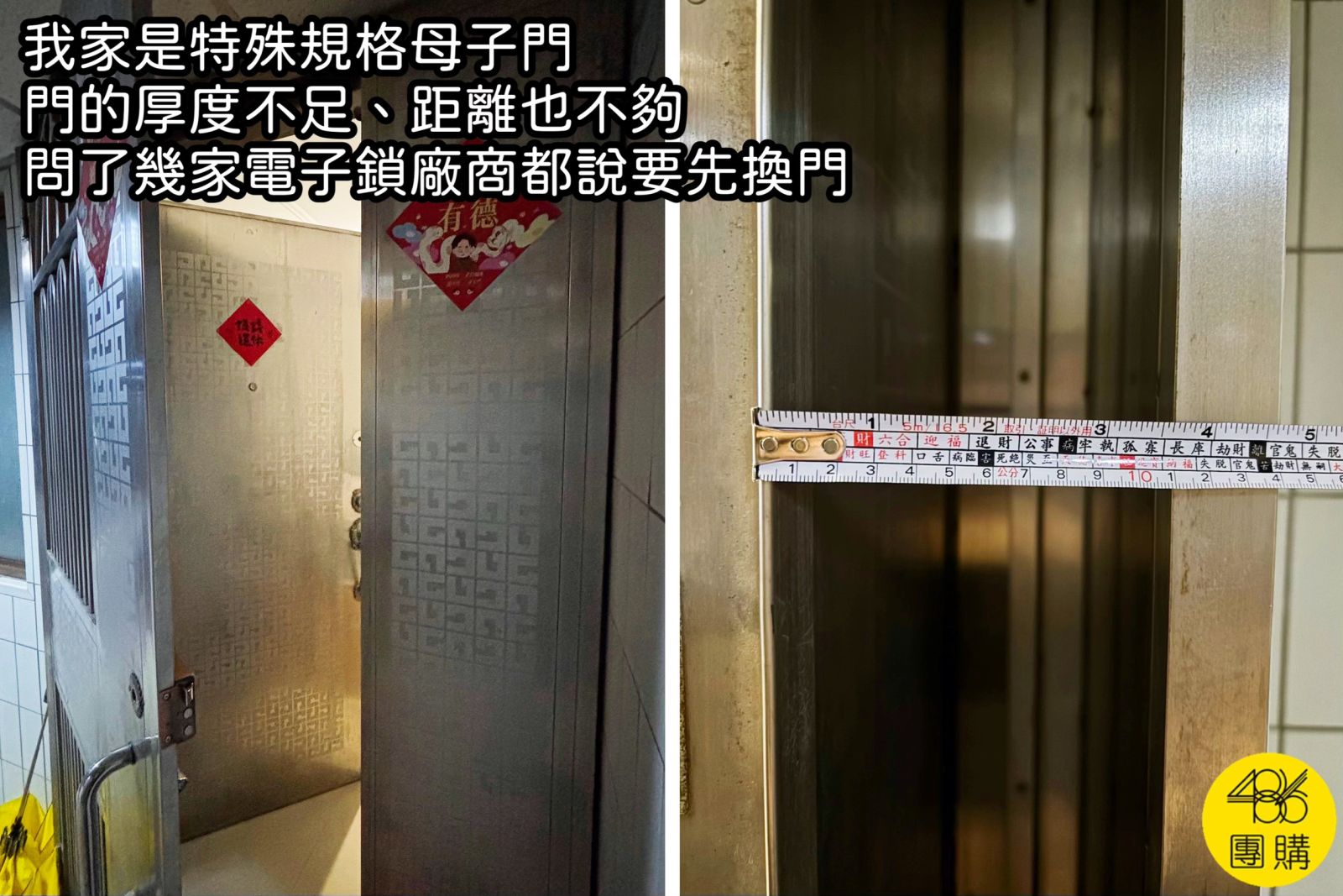 ▴我家是特殊規格「母子門」,厚度不足、距離也不夠,沒辦法裝電子鎖