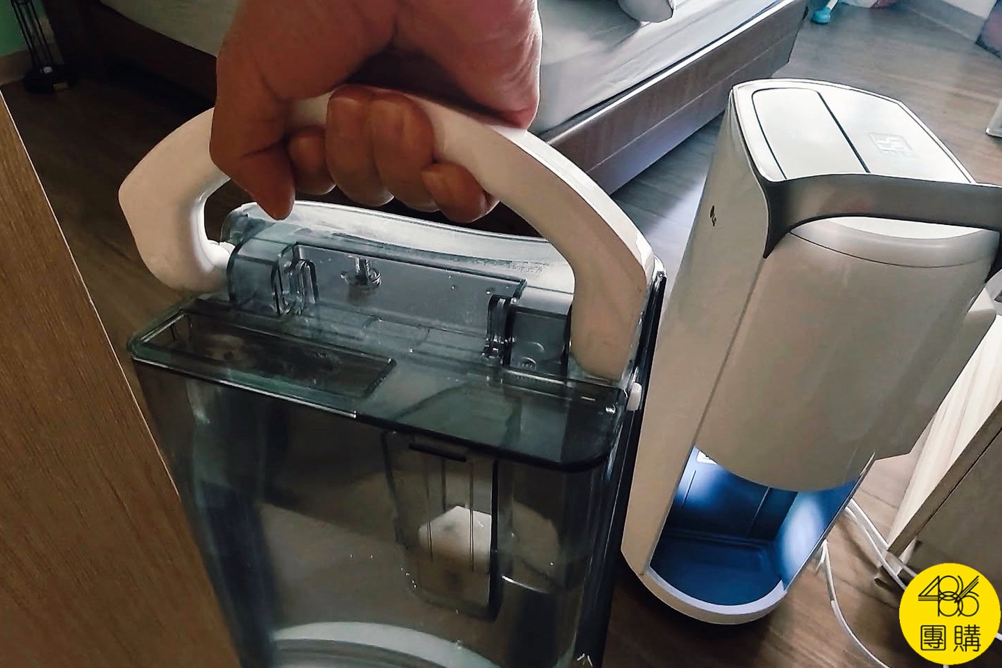 「單手提取」水箱設計絕對無敵,手把一拉就能將水箱整個拉出來拎走,另一隻手甚至還能邊滑手機回訊息,簡單又輕鬆,再也不用倒個水像練膝蓋一樣(相信我,膝蓋不好的人真的會感謝這設計),甚至還能使喚家裡國小的女兒幫忙倒水XD
