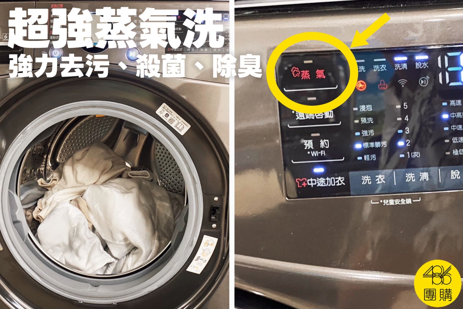 如果可以的話,我建議家裡的洗衣機一定要選有蒸氣洗的,蒸氣有超強的去污、殺菌、除臭力,例如486×LG獨家15公斤尊爵黑WiFi蒸氣滾筒洗衣機這台就有,每次洗床單、枕頭套、或小孩和老公的臭襪子、白色衣服時,我一定都會開蒸氣洗。
