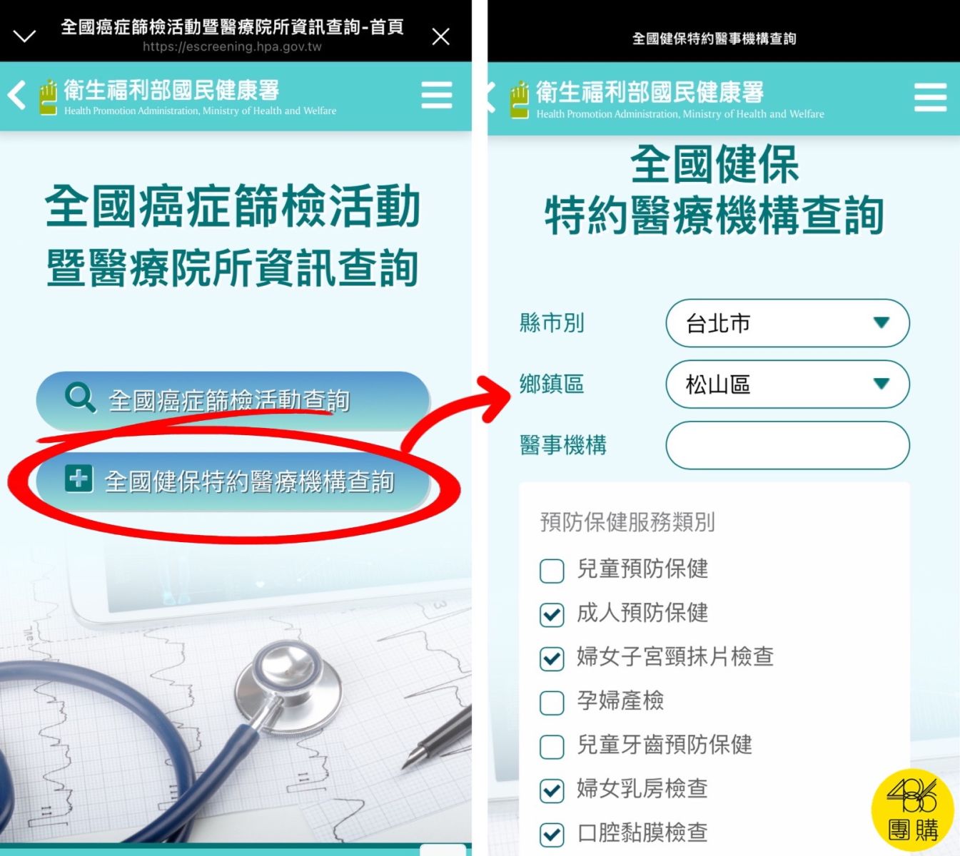 另可透過全國癌症篩檢活動暨醫療院所資訊查詢網站(https://escreening.hpa.gov.tw/Home)查詢住家附近的癌症篩檢活動或醫療院所資訊,便捷又快速。
