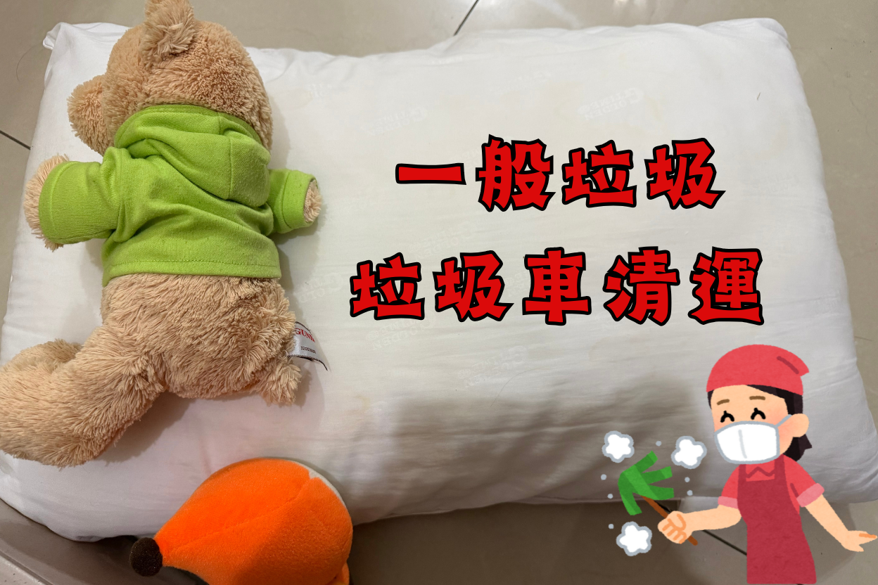 很多人以為只要是布做的就能回收,大錯特錯,家裡的舊枕頭、棉被、還有小朋友不要的絨毛娃娃,通通屬於「一般垃圾」,不能丟回收桶!
