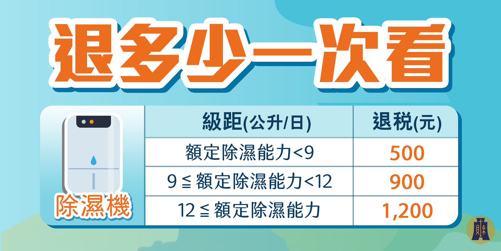 現在買一級或二級能效的新除濕機,可上財政部申請最高1200元貨物稅減免,補助申請教學看這邊→https://486word.com/page/life/A2008271208347a/