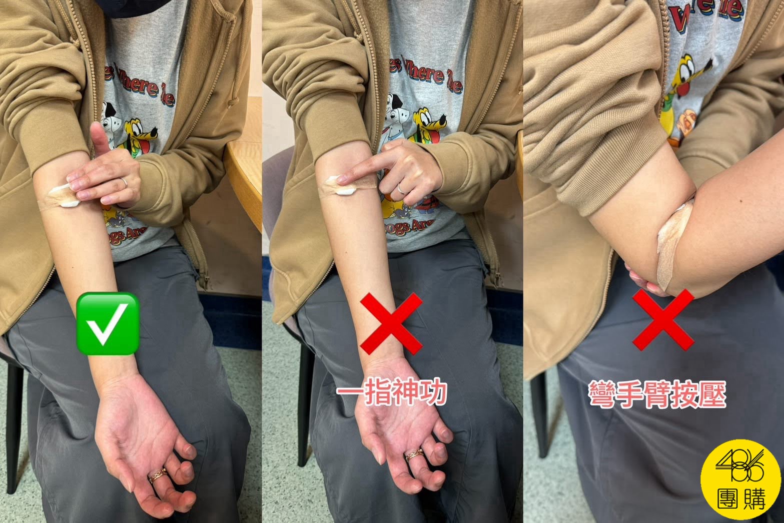 在這呼籲大家:抽完血必須秒壓傷口、必須秒壓傷口、必須秒壓傷口。