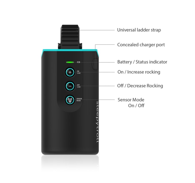 ▲ Sleepytroll 的電池約可以維持ㄧ個小時,但相當方便充電。適用各種推車,能讓所有的推車都變身為安撫搖椅。只要寶寶有動作或發出聲音,Sleeoytroll就會自己又開始啟動搖椅功能。讓寶寶們外出時也能睡的安穩。