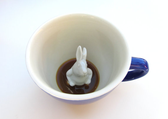 ▲可愛的兔寶寶泡在茶裡,就像在泡湯一樣,不過杯子在清洗時應該會有點不方便。